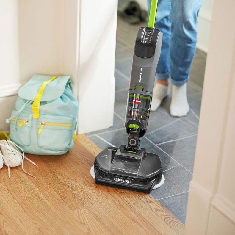 REINIGING: SpinWave + Vac zuigt droog vuil op terwijl u dweilt. Dankzij de